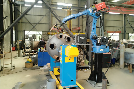以压力容器为例。大多数压力容器都有一个喷嘴组件。由于焊接的技术特性,传统上只用手工焊接,这是一个多道工序,涉及许多起止点和频繁的重新定位。焊接喷嘴非??量蹋杂诤腹だ此?,坐在那里手工焊接喷嘴是一个巨大的工作任务。这就是使用机器人自动化的好过程的原因之一。