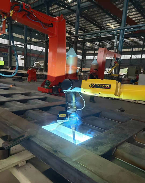 激光视觉传感器通过激光条纹扫面焊缝,获取焊缝的截面积、焊缝的间隙以及焊缝的左右错边高度等参数,配备先进的机器人接口,将数据传输给机器人,机器人能够根据激光跟踪视觉传感器扫描焊缝的截面参数来实时调整焊接摆幅、摆动频率、摆动左右停留时间、焊接速度、焊接电流电压,实现高速高质量的自适应焊接。