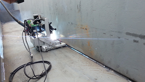 但是在很多行业应用现场,例如造船、桥梁制造、车辆制造、石油和金属设备等由于工件本身体积大、工件变化多,架设轨道相对复杂,架设轨道后焊接轨迹为固定轨迹,无法解决工件本身焊接形变,拼接偏差等问题,导致需要人全程参与调整位置,使用成本及便捷性上升,创想智控在焊接小车既有特点和优势不变的情况下,将原有焊接小车轨道去掉,通过激光视觉传感器及自主研发的智能小车控制系统引导小车自主运行;实时跟踪焊缝位置,实时调整小车位置,来达到焊接位置准确、操作简单、人工介入大大减少。