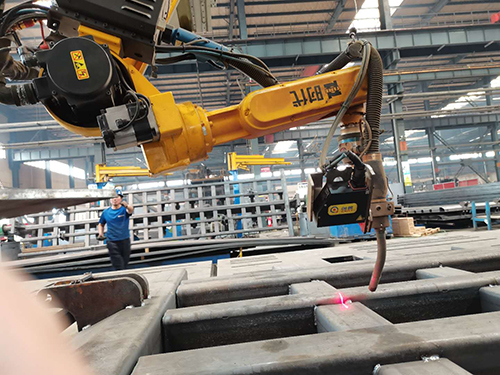 焊接机器人的作用焊缝跟踪器:焊缝跟踪器别名焊接跟踪器,焊缝跟踪系统,焊缝跟踪设备等。其功能是在焊接过程中自动检测并自动调节焊枪的位置,以便于始终跟随焊接位置进行焊接,焊枪与工件之间的距离始终保持恒定,从而确保了焊接质量,提高了焊接效率并降低了劳动强度。
